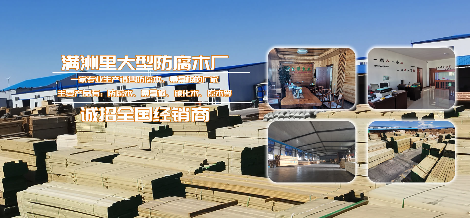 滿洲里松緣木業(yè)有限公司是一家專業(yè)從事戶外防腐木深加工企業(yè)。工廠總占地面積2.4萬平方米,其中廠房占地面積4000平,水泥硬化地面積2萬平方米,防腐木年生產(chǎn)量80000立方米,桑拿板年生產(chǎn)量310000平方米。公司長年貯備充足、刨光材、板材成品防腐木以及各種進(jìn)口防腐木材。從俄羅斯選材調(diào)運(yùn),保證有充足的優(yōu)質(zhì)木材。精選生產(chǎn)加工的樟子松嚴(yán)格按照美國AWPA防腐等級(jí)標(biāo)準(zhǔn),經(jīng)過真空加壓浸等15道專業(yè)的木材防腐生產(chǎn)工藝流程制造,使木材具有防腐、防蟲、防霉等功效,已廣泛用于古建筑、木亭、別墅、住宅區(qū)、公園廣場等公共場所。壽命持久50以上。產(chǎn)品售前售后的服務(wù),力求出廠的每件產(chǎn)品都是精品、藝術(shù)品,并在全國設(shè)立三十多個(gè)市級(jí)經(jīng)銷商。